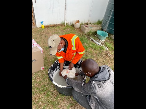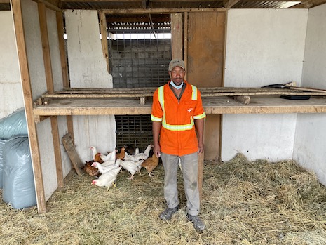 Eine weitere kleine Erfolgsgeschichte ist die Anstellung eines festen Mitarbeiters mit einem 50%-Arbeitspensum. An seinem neu geschaffenen Arbeitsplatz kümmert sich Xolisile Dano um die Bewohner des Hühnerstalls und sichert damit sein Einkommen, mit dem er seine ganze Familie ernähren kann.